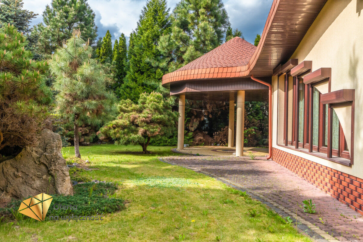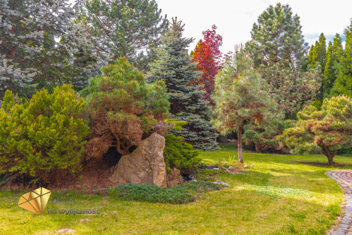 Dom parterowy z użytkowym poddaszem o powierzchni użytkowej 205m2 (całkowitej ok.229,60m2).Ogród zagospodarowany z licznymi nasadzeniami, oczkiem wodnym, oraz rabatą ogrodową. Nieruchomość nie wymaga nakładów finansowych.