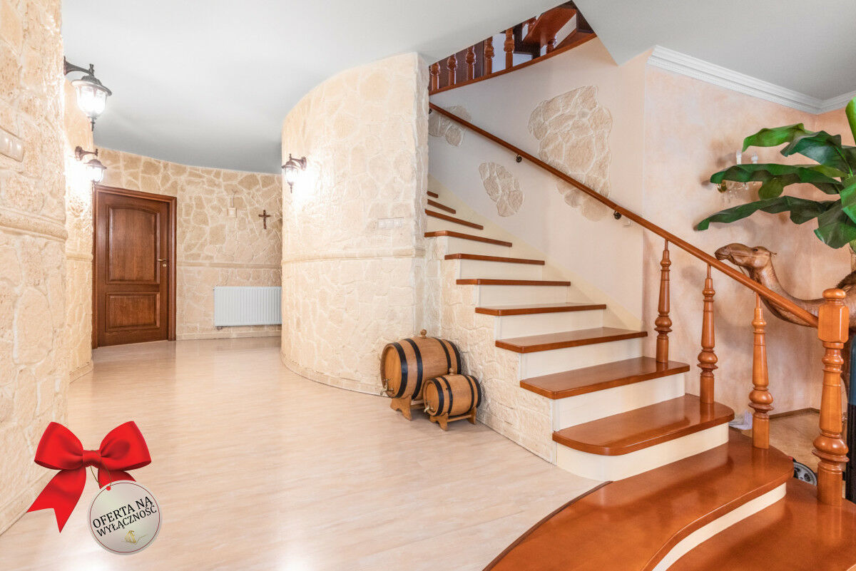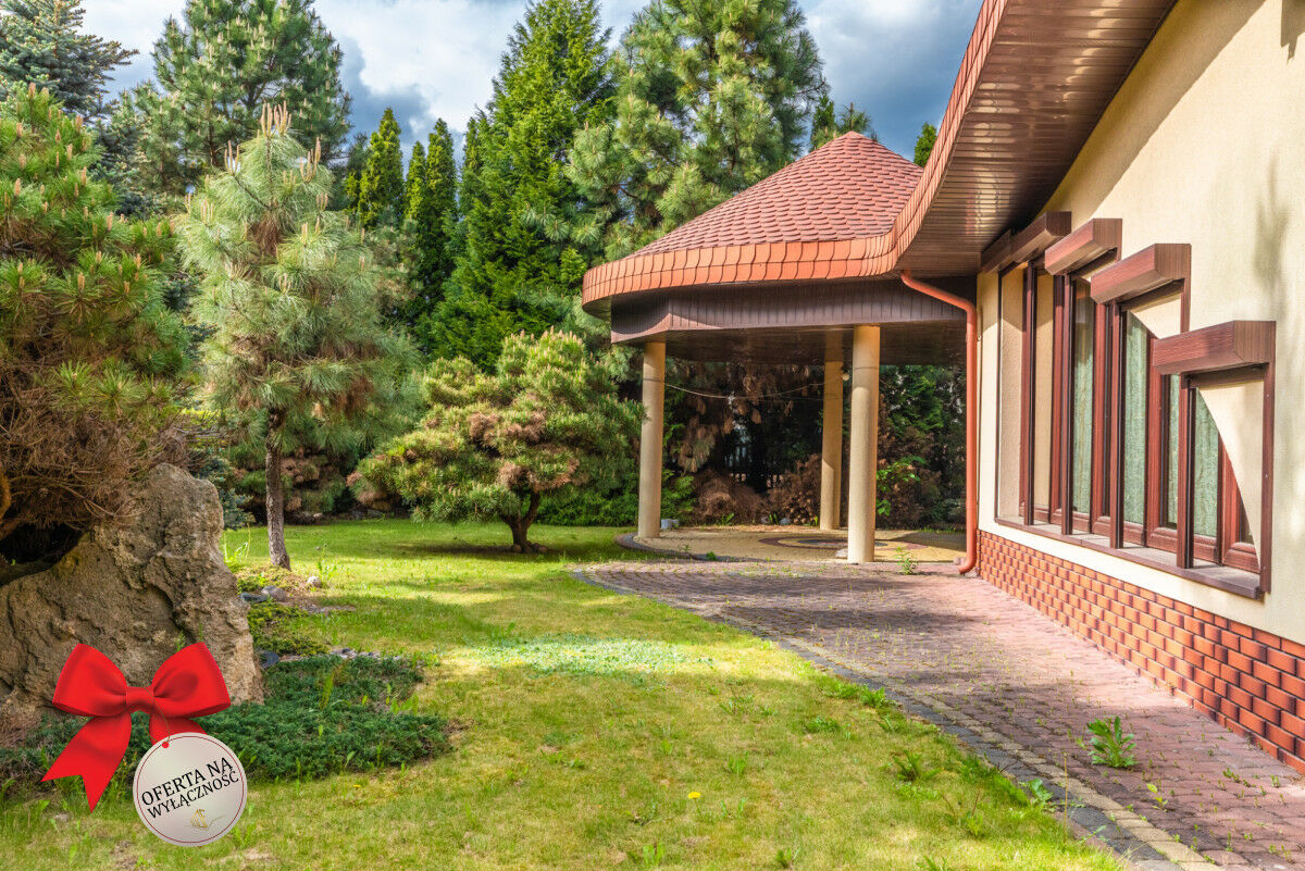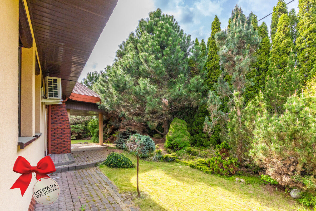 Dom parterowy z użytkowym poddaszem o powierzchni użytkowej 205m2 (całkowitej ok.229,60m2).Ogród zagospodarowany z licznymi nasadzeniami, oczkiem wodnym, oraz rabatą ogrodową. Nieruchomość nie wymaga nakładów finansowych.